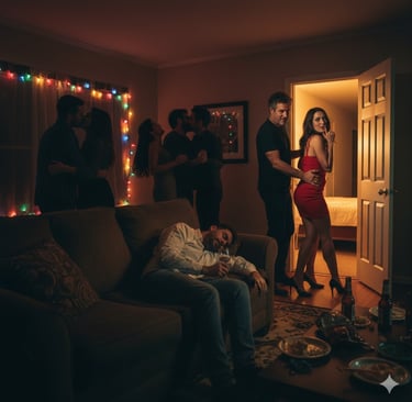 Al otro día, mi esposo se levantó y fue a la habitación. Me despertó y se disculpó por dormirse temprano. Yo con una sonrisa le dije que no había problema, que todos se habían ido y me había acostado.